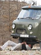 On the 2nd leg of our trip to Khovsgol. A 13hr ride in a Russian minivan. The picture was taken during the 3hr wait for other sardines to appear. 15 adults and 1 child fitted into an 11 seater. The driver's motto: There's always room for one more!!! We couldn't move for most part of the trip, except up and down with the rugged terrain. Shyan is claustrophobic, so it was one hell of a ride for her. She was a popiah skin away from freaking out.
