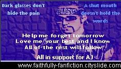 | In this story, AJ is thrown on an emotional rollercoaster when the group's tour bus wrecks and his girlfriend is seriously injured. Will she survive the ordeal? If she does, will AJ be able to cope with the secret he discovers? Can their love conquer anything...or will it be gone with her memory in the accident? | ||||||||||||||||