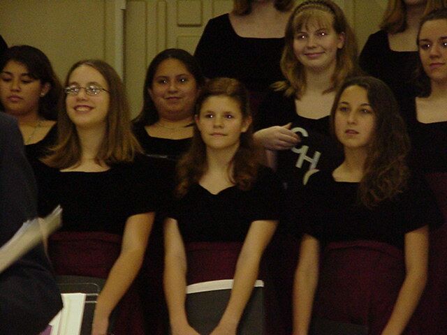 This is a picture of me and my friends at a choir concert last year. From left to right Heather (me), Ashley (visit her site Cutness!), and Jenny. |