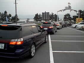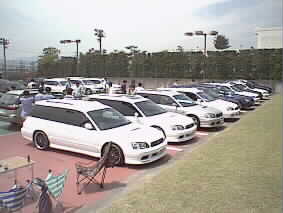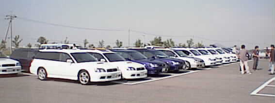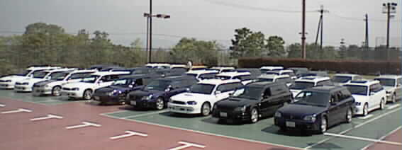 ![]() 鮎の郷駐車場にて。後ろの列にも同じ数のレガシィが!! |