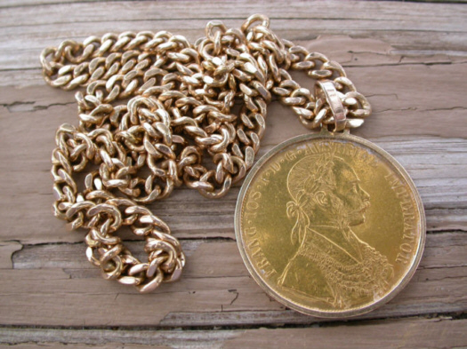 was it? It was a large solid gold coin on a chain. A rare Austrian gold coin.