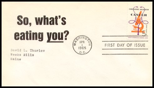 Here we have a tasteless Going Postal add-on cachet created by Rich Williams from Shalimar FL. Rich is well known for his irreverent cachets. I purchased this cover from Rich after I was the high bidder for it on eBay. Although the cachet is not dated, I'm pretty sure that it was added to this cover less than a year ago. As you can see, the cachet's tasteless message asks, "So, what's eating you?" Rich's questionable humor is not for everyone.