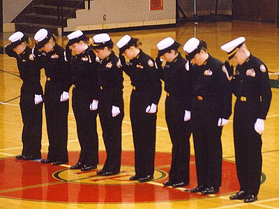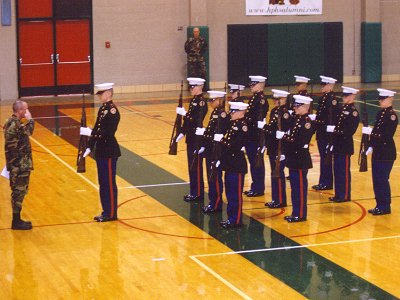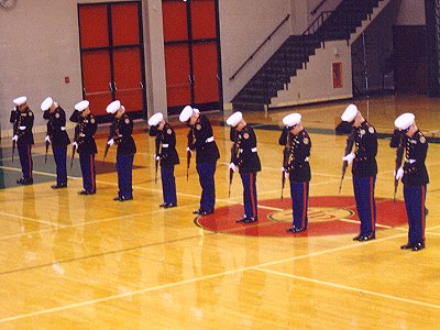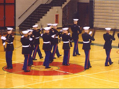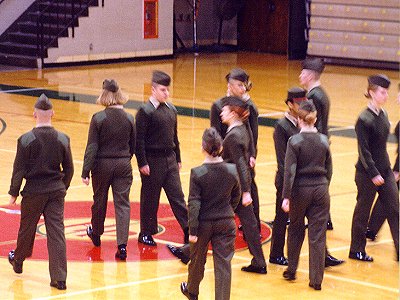 Most everyone in uniform took part in this event. The judging was punctilious, (exacting) and within about 3 calls, they had weeded the field down to about ½.