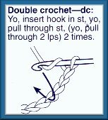 of a row of dc, chain 3 and turn. The last dc in a row is worked