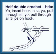 the hook. Yo and pull the yarn through the 2 lps on the hook. Hsc