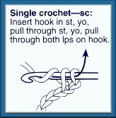 (sc = insert hook into stitch indicated, YO, pull lp through) Keeping