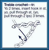 YO, and pull the yarn through 2 lps, 1 lp still on hk. Triple Treble