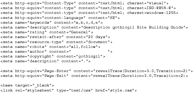 פקודות meta מתייחסות לשפת האתר, עיברית ויזואלית או עיברית לוגית.