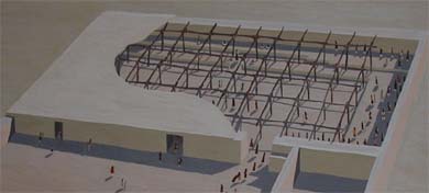 reconstrucción hipotética del Recinto de los Postes con un techo.