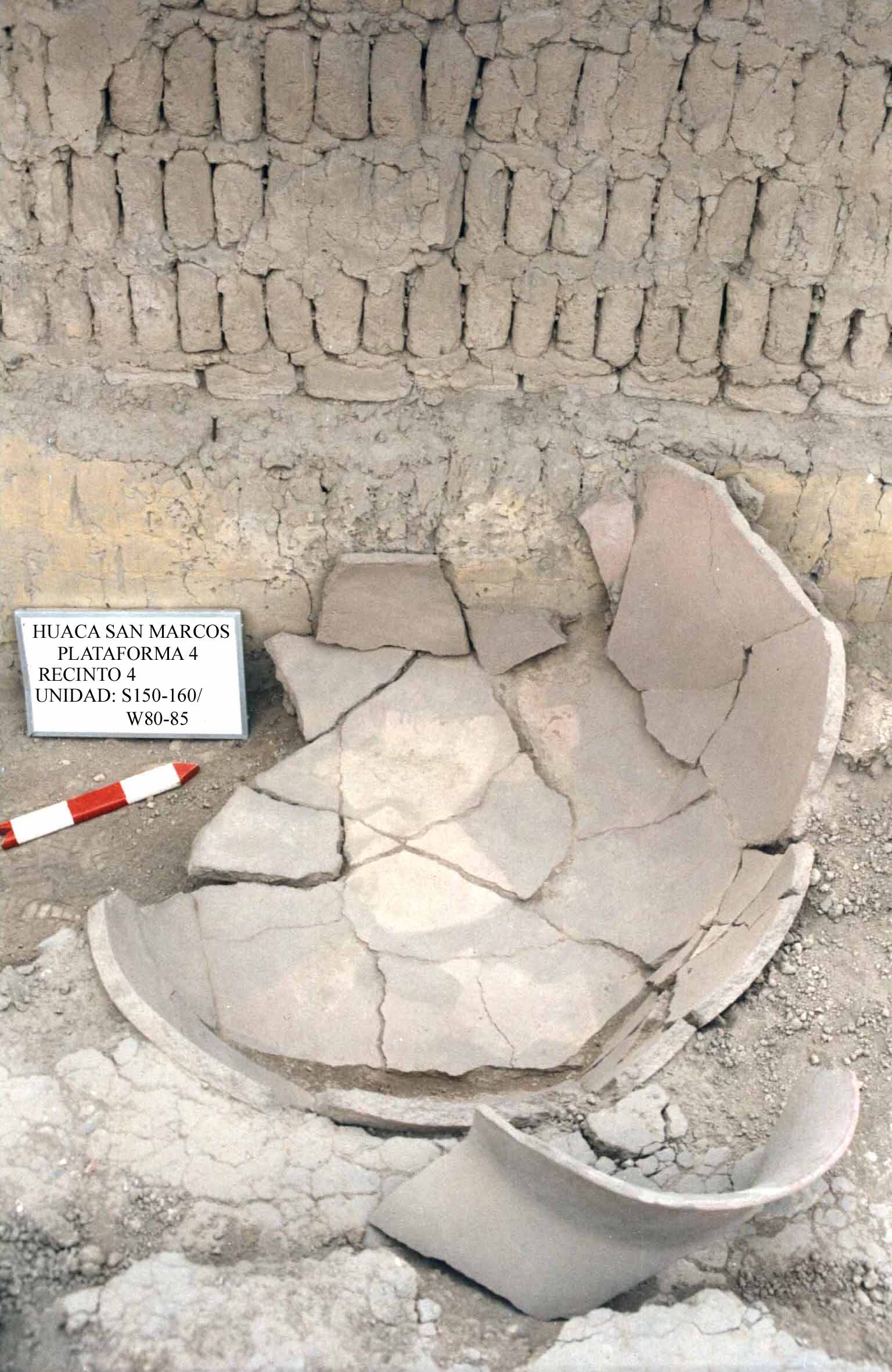 La Plataforma 4 se encuentra al sur de la Plataforma III, presenta una sección alta ubicada al sur y otra baja al norte. En la parte alta se encuentran seis recintos de planta rectangular numerados del 1 al 6. En los recintos 3, 4 y 6 se hallaron hoyos que contienen postes de huarango, lo que indicaría que estos ambientes estuvieron techados. En los recintos destacan grandes vasijas colocadas en hoyos que habrían servido como depósitos de alimentos o bebidas.