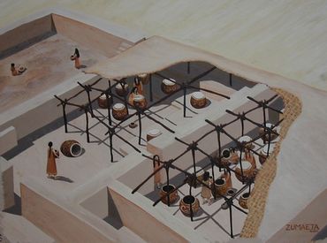 Reconstrucción hipotética de las actividades en los Recintos de las Vasijas.