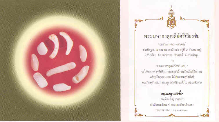 นับเป็นเกียรติประวัติแก่พระมหาเจดีย์และความภาคภูมิใจของผู้ที่ได้ร่วมสร้าง ในการที่สมเด็จพระสังฆราชฯ ทรงอนุโมทนาการสร้างพระมหาเจดีย์ในครั้งนี้ และถวายนามว่า "พระมหาธาตุเจดีย์ศรีเวียงชัย" พร้อมทั้งประทานพระบรมสารีริกธาตุมาร่วมบรรจุในองค์พระมหาเจดีย์นี้ด้วย