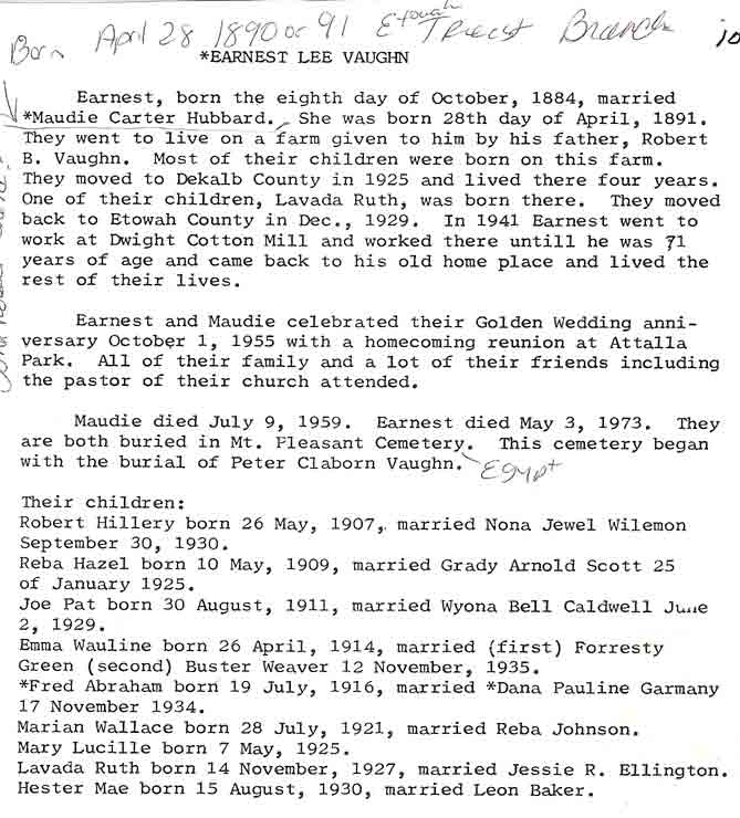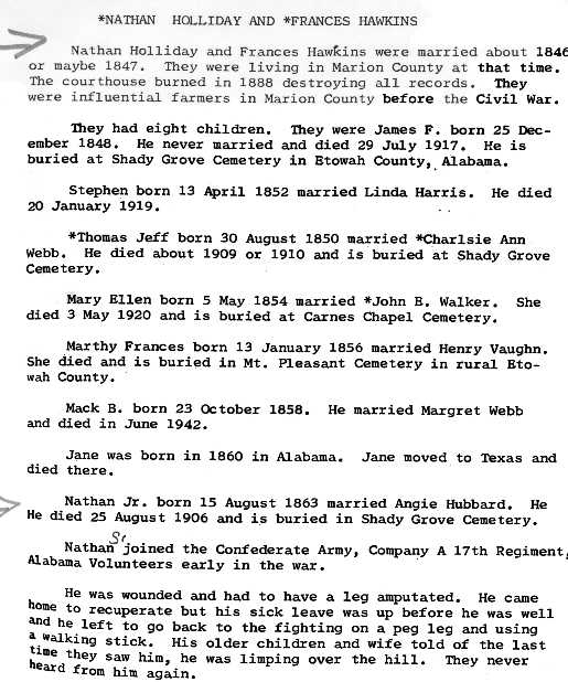 Compiled by Carolyn Miller Pruitt, Glencoe, Alabama August 1995