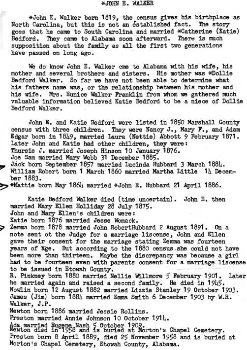 - Caro Hubbard Walker in the 1900 Census. Etowah Co Alabama