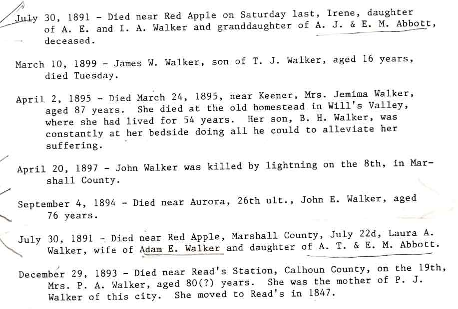 - Abstract of Augustus J Abbott's Will from a book by Sybil Talley McCluskey, Gadsden Alabama called Abstracts of Probate Court Files 1866-1900, Etowah, Baine County Alabama Also, Charles M Abbott married a M F Walker March 20 1871