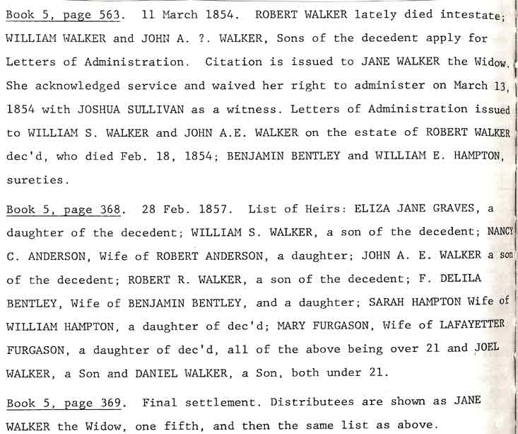 - John A E Walker is the son of Robert and Jane Walker. Abstract of Robert Walker Will, Alabama Records Book 167 Marshall County Estates Marriages and Cemeteries by Pauline Jones Grandrud