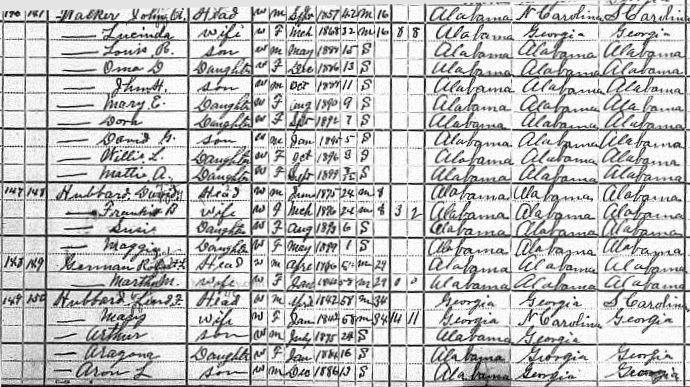 In the 1900 AL Etowah Co Census ED 160 Sheet 9A theb scan is a little clearer