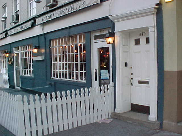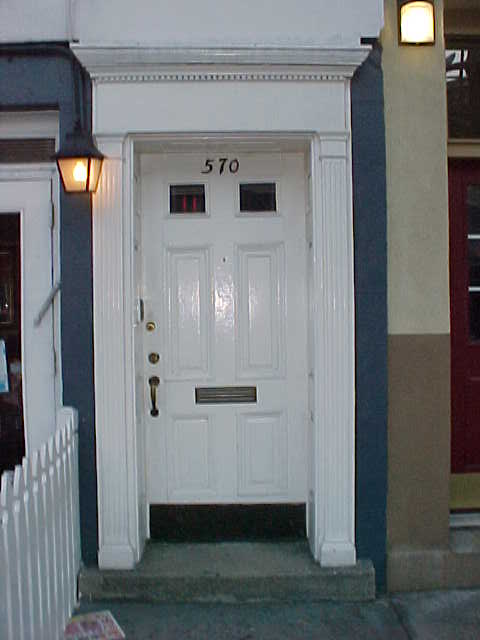 | Alright, so if you're actually inside the danged 'Dylan Thomas' hangout -- you look across the street (after the wheezing guy in the green jacket get's out of the way) and you see this 'house' that was built just prior to 1860. (It has the white door.) That's 570. |