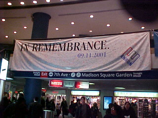 (Enron banner, signed by employees just weeks before they were laid off. Found at Penn Station.)
