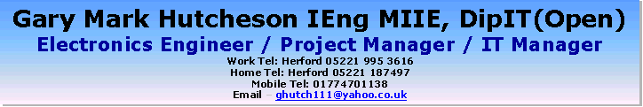 A qualified electronics control engineer with extensive practical, supervisory, managerial and project management experience gained during 22 years of service in HM Forces.   A pro-active and imaginative manager of personnel and equipment.  Excellent communication skills at all levels, used to maximising team and individual potential. Experienced at working in high pressure environments whilst remaining flexible.  Good negotiation, presentation and diplomacy skills in both military and civilian environments.  Excellent IT skills and renown for exploiting IT based technology.