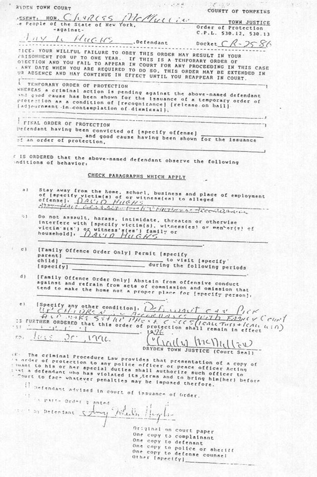 Abstain from threatening or causing harm to the person or property of petitioner, David R. Hughes.