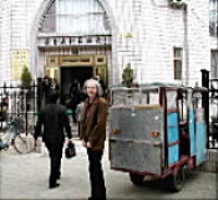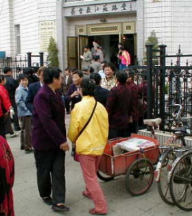 By bicyle, pedicab, and bus, but mostly by walking, members crowd into