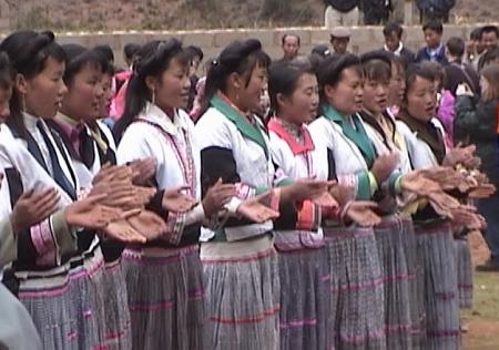 | A wedding party in a Miao village in Lu Feng County, north and east