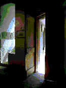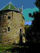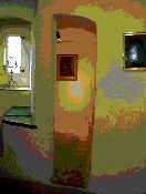 | De hoofdingang binnen in de ridderzaal | De enige andere ingang is het kelderluik. |