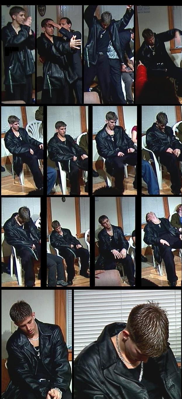 Our leather clad friend here is Drew. Drew doesn't belive he can be hypnotized and puts up a good fight. But as these pictures show, after a few minutes of hypnotic induction hes out like a light...