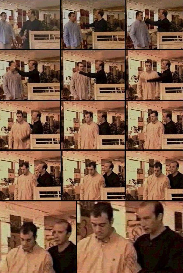 This sequence is taken from a video clip of 'hyp the streets', a TV programme where Paul Mackenna roamed the streets of London hypnotizing unwary passers by. David has been hypnotized already, so it only takes a wave of Paul's hand to send him back into a deep deep sleep.