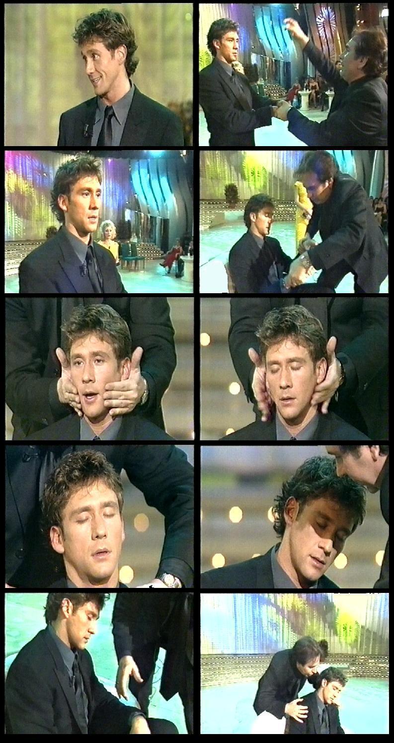 This induction took place on Spanish television. Miguel is a Spanish celebrity who has relunctantly agreed to be hypnotized on national television. After taking through a series of relaxation excercices, Miguel is ready. The hypnotist takes Miguel's head in his hands and says the word.... and Miguel falls deeply asleep