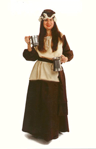 TAILORING: In the Middle Ages, for the wealthy, most clothes were created by tailors. Some fabrics tailors used were : Burnet, perse, lincoln scarlet, kersey, russet, chalons, damask, and sandal. Most of the population, however, made their own clothing. CLOTHING: Often, kings and queens would wear crowns and brightly colored silks. Obviously, their clothing was very expensive and only they had enough money to afford such beautiful things. Shoemakers and their spouses often wore borealis hats. The clothes they wore with that were woolen coats with fur-trimmed sleeves. Inside the coat was a woolen doublet. Holy orders, such as friars, wore cloaks with hoods and habits. On their clothes was a rope belt with wooden beads for counting prayers. Felt hats with stirrups and brown jackets were the daily wear of manor lords. Peasants' daily wear was simple: straw hats that they made themselves, linen shirts that they made themselves, leather flasks, hoses (pants), and pewter badges or good luck charms. |