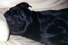 Bitten by the travel bug once again, I caught the midnight train to Georgia. Upon arriving in Atlanta, I got work in the Purina factory as a quality control technician. I quit the factory after gaining 10 pounds in one week. Consequently, as I wandered looking for new work, the animal control people were able to catch me as I had packed on some weight. They took me to a dingy motel where I was given my own room, but was kept up all night by party animals. After 3 days at the Cobb County Humane Society, two people let me out of my room and let me run in a yard. I was so excited, I didn't stop running. Its a miracle that they decided to adopt me. But I left with them that day, January 10, 1998, and have been with my new Mom and Dad ever since.