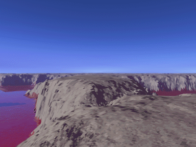 | Grumbling you get up and walk back over to the pit, looking down at the scorpions you toss a rock down. The rock doesn't move. You blink and touch the surface of the pit, it's hard. Glaring you knock against the clear crystal, "Grrr....Sneaky trick. There must be something up ahead. I'm just glad this isn't an actual pit." Grinning you cautiously walk across the crystal onto the other side. Groaning you look up ahead, it's all flat! The only reason it looked like a peak was because the ground was higher on the other side! Growling you walk on the slick walkway. On both sides og the walk way there's a red lake, both look mightly deep and you even swear that you see some huge shadows moving under the surface. But your cowardice keeps you from investigating the shadows, after all you were warned that the non sentient beings of Ice Plains were dangerous. You remember talking to Crystal before your journey began, she even told you a story about several lakes. You recall their names, Fever Lake is a green lake with orange shadows and the sky is red above the lake, drinking the water would cause you to go into a coma, Serakin live in that lake. Gera Lake, a greeny blue lake thats home to a family of Gerackin, a serpant like carnivoure. Dragon Lake, home to the water dragons. Then you remember something about Scorpion Lake...A red lake with several water like scorpions. Wait a second....Scorpion Lake....You figure thats where you are. You had to be, if it's the only red lake then you had to be in scorpion lake. Grinning you continue on your way... |