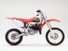 SPECIFICATIONS Model: 2001 CR80R Engine Type: 83cc liquid-cooled single-cylinder two-stroke Bore and Stroke: 47.0mm x 47.8mm Compression Ratio: 8.4:1 Induction: Reed-valve Carburetion: 28mm piston-valve Ignition: Solid-state CD with electronic advance Transmission: Close-ratio six-speed Final Drive: #420 chain; 15T/49T Front Suspension: 37mm fully adjustable leading-axle inverted Showa cartridge fork; 10.8-inch travel Rear Suspension: Pro-LinkŪ fully adjustable Showa single shock; 10.8-inch travel Front Brake: Single disc Rear Brake: Single disc Front Tire: 70/100-17 Rear Tire: 90/100-14 Wheelbase: 49.1 inches Rake (Caster Angle): 26.43 degrees Trail: 75.0mm (2.95 inches) Seat Height: 32.8 inches Ground Clearance: 12.6 inches Dry Weight: 142.8 pounds Fuel Capacity: 1.5 gallons Color: Red