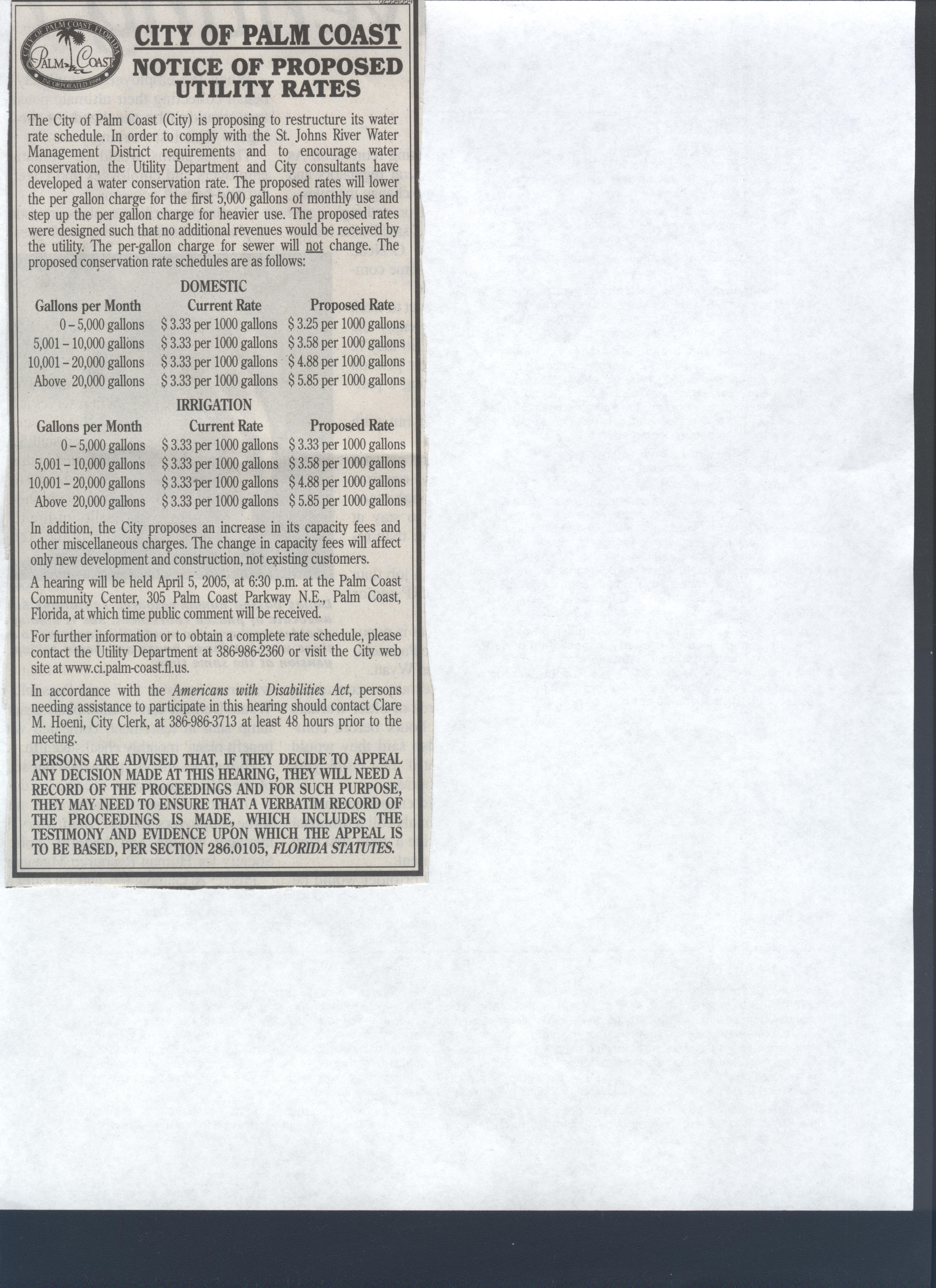 CITY OF PALM COAST UTILITY RATE INCREASE