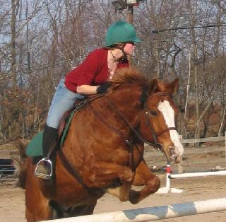 I'm a tool and made a page dedicated to my horse. His show name is 'Mischief Maker' but he more commonly goes by 'Mystic.' He's a 16.2 chestnut Quarter Horse gelding with a blaze, and two socks. I have had him since November 17, 1999. Our show colors are hunter, navy, and the occasional, traditional black and/or white trim. Mystic is a national jetsetter - he's lived in NJ, NY, and now MI.. and if I relocate for grad school, he'll probably go there too. Things he loves includes carrots, apples, mints, poptarts, hot fries, danishes, leisurely romps, running away from Mom, and harassing Auntie Rachel ;)