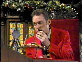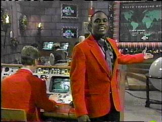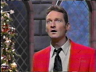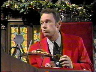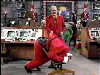 Show summary (not ALL in order, bear with me): Ryan , Colin, Wayne, and many working elves, are a team of Santa Trackers at Santa Central, tracking Santa's every arrival around the world. Tensions rise as the trackers worry that Santa might not make it to their location at Disneyland! Along with tracing St. Nick, we get to hear unnecessary music performances, meet Mrs. Claus, and catch comical moments between Ry, Col, and Wayne. Such as, when Colin gives Ryan some hot cocoa, Ryan spits it out on one of the tracking machines, which then blows a fuse. But, thanks to Colin, later when he is plugging in the lights for his small Christmas tree, it brings back the power for the equipment. During the tracking process, they talk to different news reporters from different countries, by satellites, who are helping to track Santa too. Ry, Col, and Wayne always want to catch a glimpse of Santa at these countries, but are always too late. At Santa Central all the Santa Trackers begin to worry if Santa will make it to Disneyland in time. Certain moments, like Colin showing the Anatomy of Santa, or Colin having Wayne try on the new super Santa suit, are not only entertaining, but educational. The highlight of the show, which is sure to bring a tear to anyone who has ever dreamed of meeting Santa, was when Ryan showed the viewers his Christmas photo album. Teary eyed, Ryan shares his true feelings about Santa and how he's always wanted to thank him for everything he's given him. Near the end, They guys think they should make up some kind of special greeting they can do when Santa arrives. Everyone begins the countdown and Ryan, Colin, and Wayne get really excited and can't wait. So finally, Santa Claus flies in and everyone is happy and cheers. VERY hilarious! :-D I haven't watched it in a while so some things might be a bit off, but oh well! ....Ok, Pictures! :