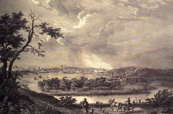 Вид Москвы и ее окрестностей (Воробьевы горы). Гравюра по рисунку О. Кадоля. 1825 год (РУССКАЯ ПРАВОСЛАВНАЯ ЦЕРКОВЬ КАФЕДРАЛЬНЫЙ СОБОР ПАТРИАРХА МОСКОВСКОГО И ВСЕЯ РУСИ - ХРАМ ХРИСТА СПАСИТЕЛЯ) |