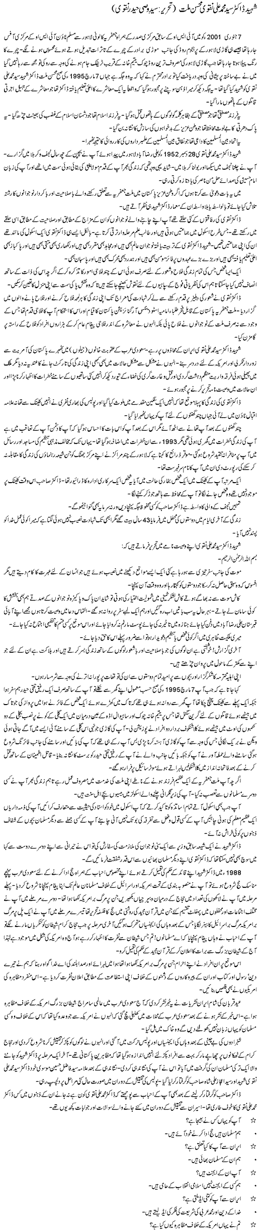 Special Essay for the the occasion of Death Anniversary of Dr.Muhammad Ali Naqvi ( Shaheed )