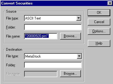 Imkbdata e-mail gurubundan aldığınız veya bu siteden indirdiğiniz prn dosyalarını C:\IMKBDATA altinda sakladığınızı düşünelim. Downloader programını çalıştırın. Tools menüsünden convert i seçin. Ekrana Convert Securities isimli minik bir pencere gelecek. Bu pencerede, Source kısmında File Type i Ascii Text secin. Daha sonra Browse düğmesine basarak C:\IMKBDATA dizinini ve bu dizin altindaki güncellemek isteginiz gunlere ait prn dosyalarini (bir veya birden fazla olabilir, 20010316.prn gibi). Bütün birden fazla prn dosyasını Shift tusuna sürekli basarkan mouse un sol tusu ile secebilirsiniz. Prn dosyasını seçtikten sonra open tuşuna basın.