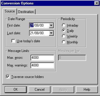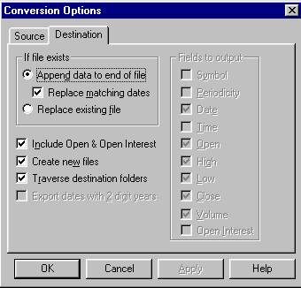 Yukarıdaki ekran da First date kısmına elimizdeki güncellemesini yapacağımız datalarin baslangıç tarihini mesela 15/03/2001 girelim. Last date kısmına da güncellemesini yapacağımız enson datanın tarihini girelim mesela 16/03/2001 gibi. (böylece 2 günlük güncelleme yapacağız, az once 20010315.prn ve 20010316.prn dosyalarini seçmiş olmamiz gerek) Periodicity kismi ve Minutes per bar kısmı sönük gelecektir. Eğer sönük gelmez ise Günlük datalar için daily seçilecek. (Bu işlemleri seanslık veriler için yapıyorsak Intraday secilecek ayrıca Minutes per bar kısmına 60 yazilacak) Traverse source folders kismi da işaretlenmemiş olacak Asağıdaki destination penceresinde bir değişiklige ihtiyaç yok: