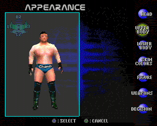 | Ken Shamrock head by Rudy Kobe,upper and lower body by Mike HEAD Nose: 002 Eyes: 013 Mouth: 102 Hair: Base 001, v128-s128-b100 UPPER BODY Standard: Original: 63 LOWER BODY Standard: Original: 79 Moves:Unknown Y Ken Shamrock by the extreme one A-2 HEAD Nose-19 Eyes-3 Hair-base-4 brightness-124 UPPER Base-5 normal-2 Wrists-both-1 length-48 shade-0 bright-24 Hands-both-7 fingers-8 shade-0 bright-28 LOWER Feet-shoes-5 length-62 brightness-116 Tights-2 length-37 var.-87 shade-255 bright-120 Knee pads-3 shade-0 brightness-64 Acc.-acc-1 shade-0 bright-96 FIGURE Abdomen-124 all Waist-126 all Thighs-126 all Legs-127 all Height-629 Weapon- piped chair Music- acolytes (apa) Move list-unknown-y |