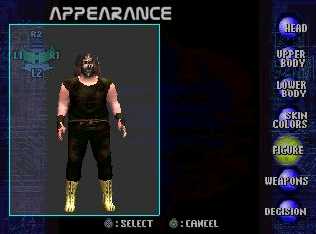 | Mankind by Omega Zero, profile by Joe HEAD: Standard: Superstars: Mankind UPPER T-Shirts: Base: 1 Normal 1 (40,0,105,68) Wrist Band: (Both): 9 (48,5,150,60) Hands (Left only): 9 (128,128,128) LOWER Feet: Shoes: 11 Normal 1 (55,128,150,144) Tights: 2 (128,0,94,76) Belt: 17 (128,128,112) Skin Color: 1 FIGURE Upper Body: Chest: (all 131) Abdomen: (all 171) Arms: (all 135) Forearm: (all 137) Wrists: (all 156) Hands: (all 138) Lower Body: Waist: (all 160) Thighs: (all 136) Legs: (all 139) Ankles: (all 134) Feet: (all 130) Height: 624 Profile: Music: Mankind (there's nothing really like Mankind's old music) Moves: Mankind. You could change a couple of things. He didn't do the Socko taunt so you could change that and giving him the "Mysterious" entrance looks really cool. Crowd Signs: 1. middle sign of middle row of page 1 2. 1st sign in 2nd row of page 4 3. 2nd sign in 1st row of page 8 Traits: 1. The Undertaker - 2. Hardcore + Logic: Attack (or grapple) and Hardcore Ability: Powerful: 3,3,2 Speedy: 2,2,2 Technical: 3,3,2 Roughneck: 4,4,2 Finally make Paul Bearer his manager. |