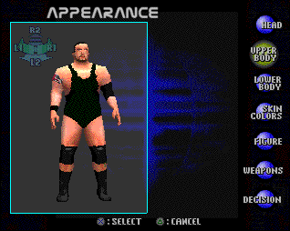 | The Big Show by Jason Blakeley HEAD Nose: 71 Figure: 4 Eyes-10 Mouth: 103 Hair: 31 Figure: 3 128,128,120 Facial Hair: 24 UPPER BODY Base: 9 Figure: 3 Tattoo: 46 Shirts: 21 128,128,0 Wristbands: 1 50,128,128,0 Right Only Elbow Pad: 4 128,0,44 Left Only LOWER BODY Underwear: 1 127,128,128,0 Feet: Shoes: 8 54,128,0,16 Knee Pads: 1 128,0,48 Both Tattoo: 26 FIGURE Chest: 138 all Abdomen: 142 all Arms: 146 all Forearms: 150 all Wrists: 146 all Hands: 146 all Waist: 142 all Thighs: 138 all Legs: 140 all Ankles: 140 all Feet: 142 all Height: 701 Moves-Unkown X |
