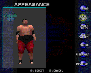 | Yokozuna by tazz1313, modifications by SuburbanHell HEAD Nose 2 (Figure 13) Eyes 66 (128,128,56) Mouth 8 Hair: Base 6 (Figure 01) 128,41,28 Back Long Hair 037 128,53,44 UPPER BODY Base M-Type 01 (Normal 01) Elbow Pad 4 128,0,88 both Left & Right Vest 19 128,0,108 LOWER BODY Tights Body Suit 002 (Normal 02) 94,217,130,128 Shorts 007 33,128,0,104 Feet Socks 026 128,0,48 Skin Color 3 128,115,80 FIGURE Head 155,157,154 Chest 182,174,190 Abdomen 211,195,228 Arms 173,174,172 Forearm 159,156,163 Wrists 167,168,167 Waist 208,202,215 Thighs 211,211,211 Legs 165,173,158 Ankles 130,130,130 Feet 132,132,132 |