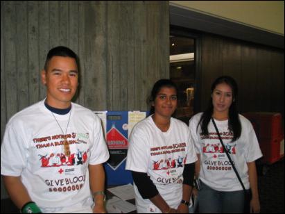 blood drive, volunteers tabled at the Student Union to promote the event and to
