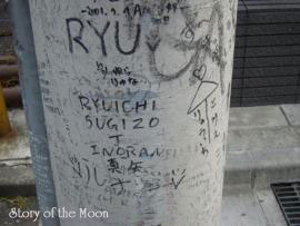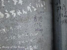 | 而在這「以前的Play House」對面有一條 電燈柱. 就寫滿了SLAVE對五子的愛. 好得意. 可能是大家為自己的尋根所作的一點留念吧^_^ | 嘻嘻^^!! 而我都要留念呀^L^ heehee! |