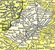 | Alabama in 1891 (only the northern portion of the state is shown in this map). Jackson County is the farthest northeast; Morgan County is in the center , almost to the border; Jefferson County is in the center on the bottom portion of this map. | |||||||||||||||||||||||||||||||||||||||||||||||||||||||||||||||||||||||||||||||||||||||||||||||||||||||||||||||
