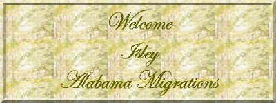 | George Isley,son of Philip of Malachi, and Martha "Patsy" Atkinson Isley and their Isley family are the first Isley's known to have moved to Alabama. George's family moved to Jackson County, Alabama from Georgia prior to the 1850 census. The exact date is unknown; however, it would have been after 3 February 1843 when a newspaper in Gwinnett County, Georgia reported a sheriff's sale "where George Iseley resides and Philip Iseley formerly resided." His family then moved to Missouri in 1853. George Washington Isley - son of Henry of George of Malachi - and his family moved to Morgan County, Alabama from Indiana in 1878. Most of his descendants are still living in Alabama. Click HERE for pictures of George and his family. |